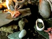 Desarrollaron parte de sus tareas cotidianas en el interior de las cuevas, en torno a los hogares. Conocemos su alimentación, la preparación de las pieles para confeccionarse el vestido, y los adornos personales.
